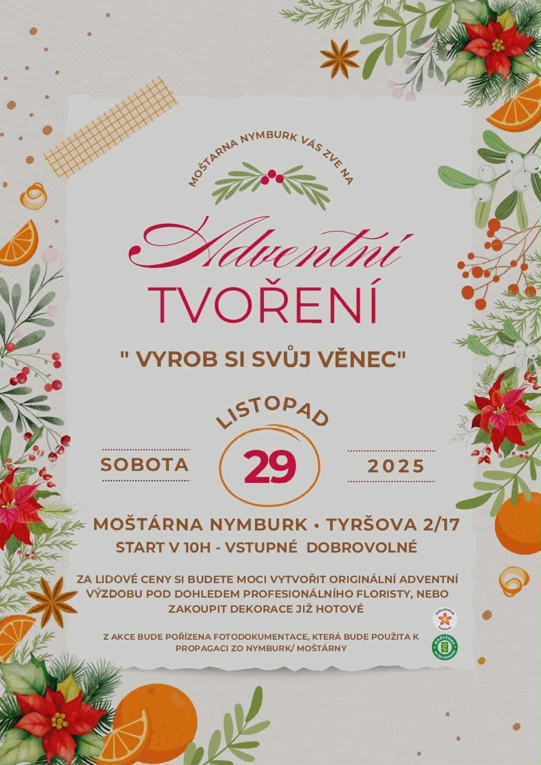 Věnečky, svíčky, vůně jehličí a ta krásná předvánoční atmosféra… Přesně to k nám na Moštárnu opět dorazí!