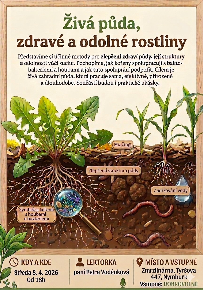 Zveme vás na fascinující workshop s paní Petrou Vodénkovou, kde se společně ponoříme do světa podzemního života. Cílem této akce je odhalit tajemství, jak proměnit vaši zahradu v prosperující a soběstačný ekosystém.