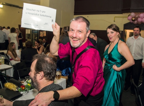 Rok se s rokem sešel a 24. února se sokolovna opět proměnila v útulný plesový sál vyzdobený světly, balónky a květinami ze Zahradnictví Jandl.
