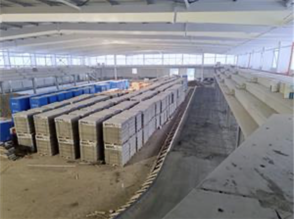 Hlavní budova a hala: Nová hala zimního stadionu je již pod střechou a opláštění budovy bylo kompletně dokončeno. Probíhá betonáž podkladní vrstvy pod šatnami na hale.